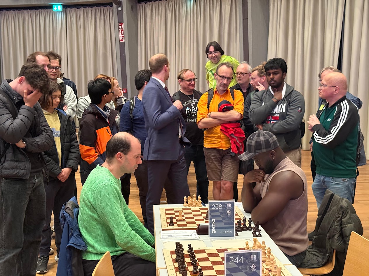 Während viele bereits gespannt auf die Siegerehrung warteten, hatten zwei Spieler offenbar andere Prioritäten – und spielten ganz unaufgeregt ihr Endspiel Turm und Springer gegen Turm weiter.